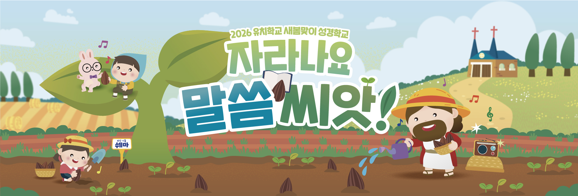 2026년 유치학교 새봄맞이 성경학교가 “자라나요, 말씀씨앗!” 주제로 진행됩니다. 예배 속에서 유치학교 친구들이 하나님을 만나고, 프로그램을 통해 교회를 이루어가는 주인공으로 자라나는 시간이 되길 소망합니다.
